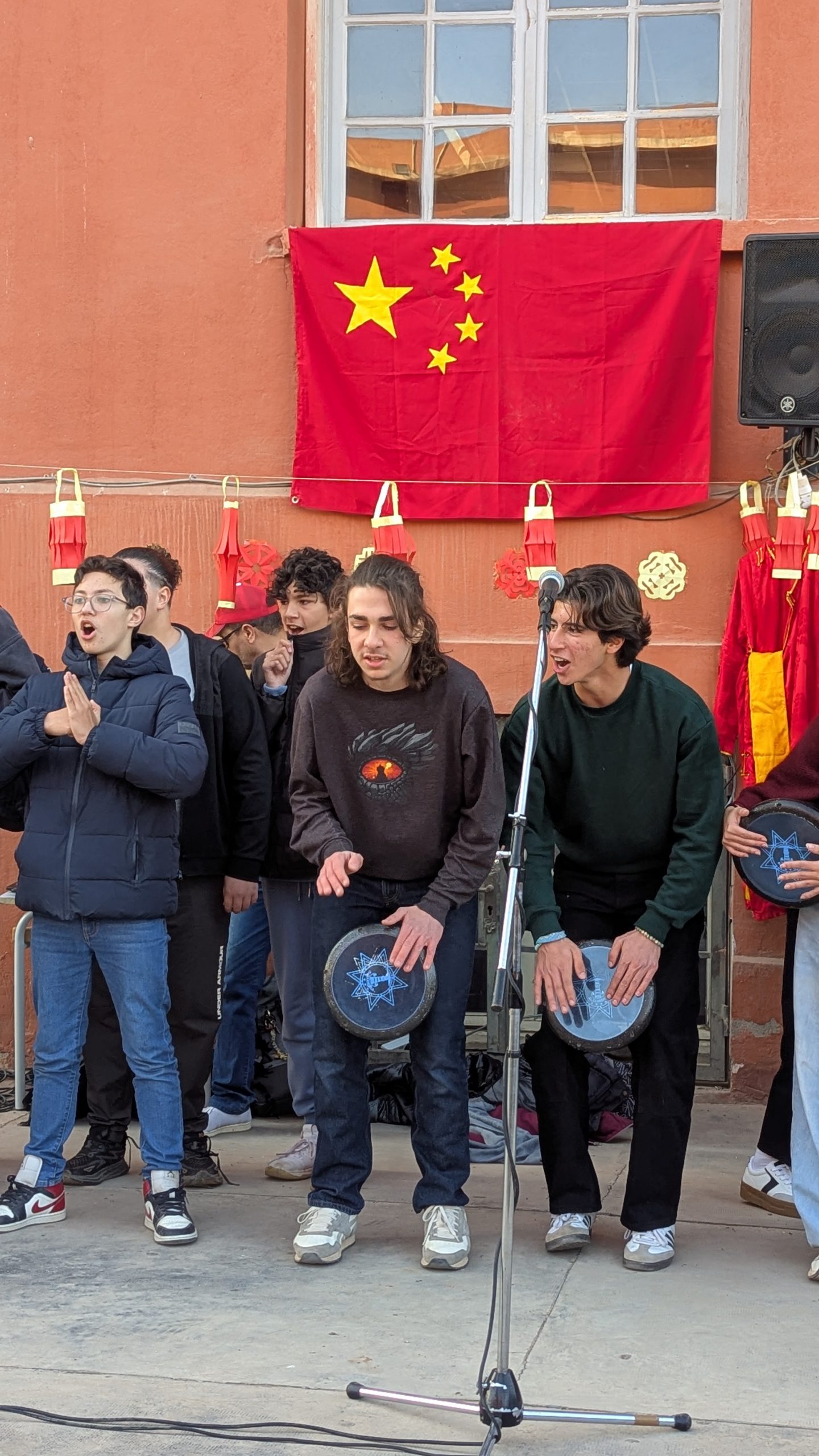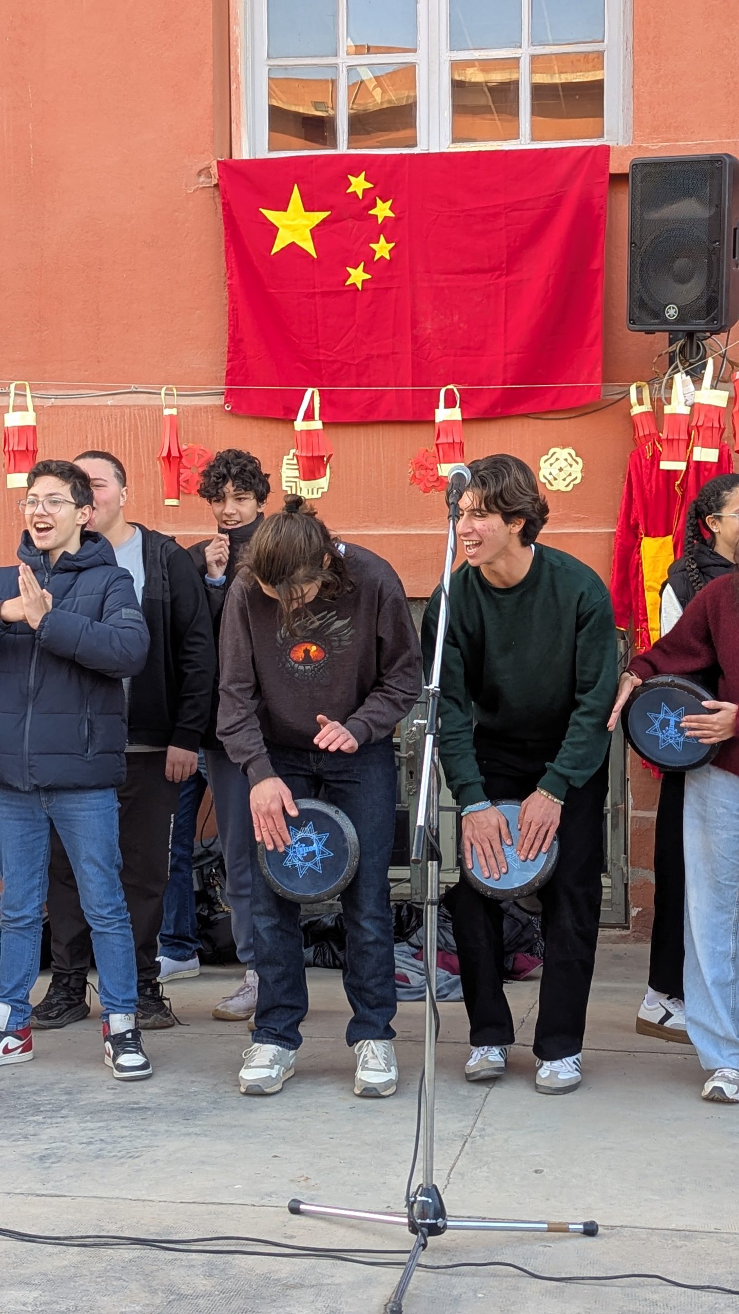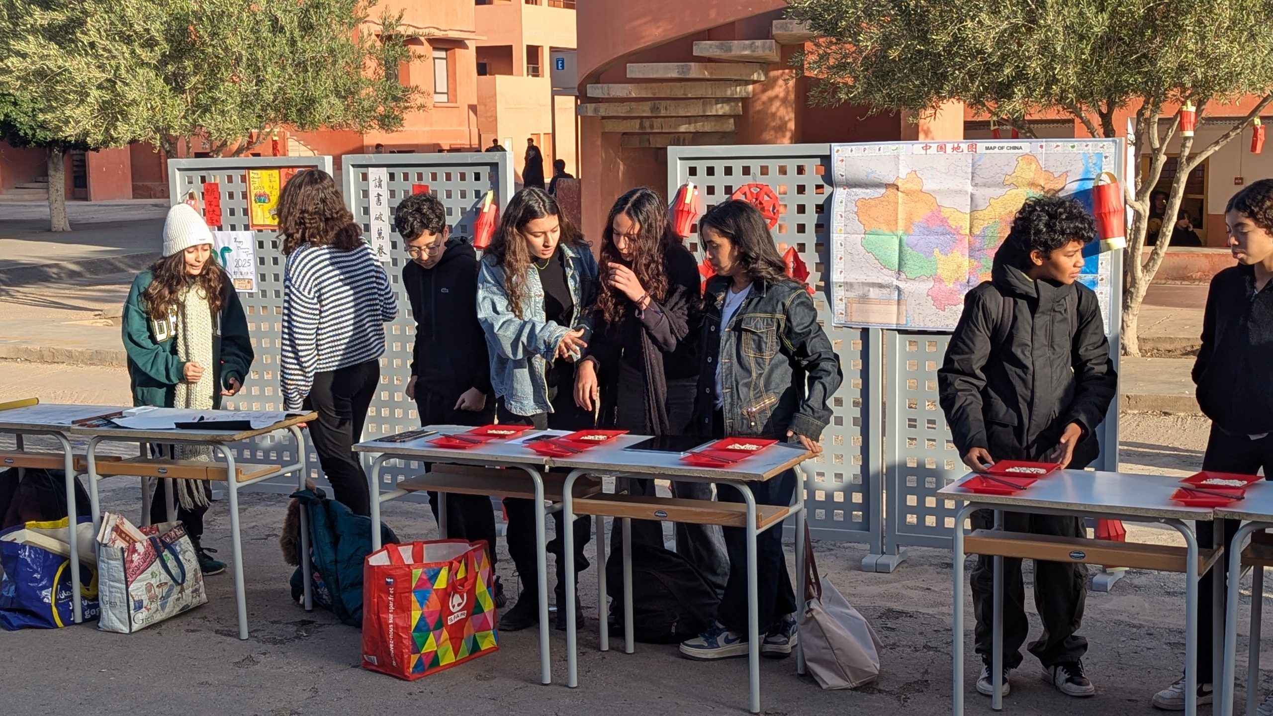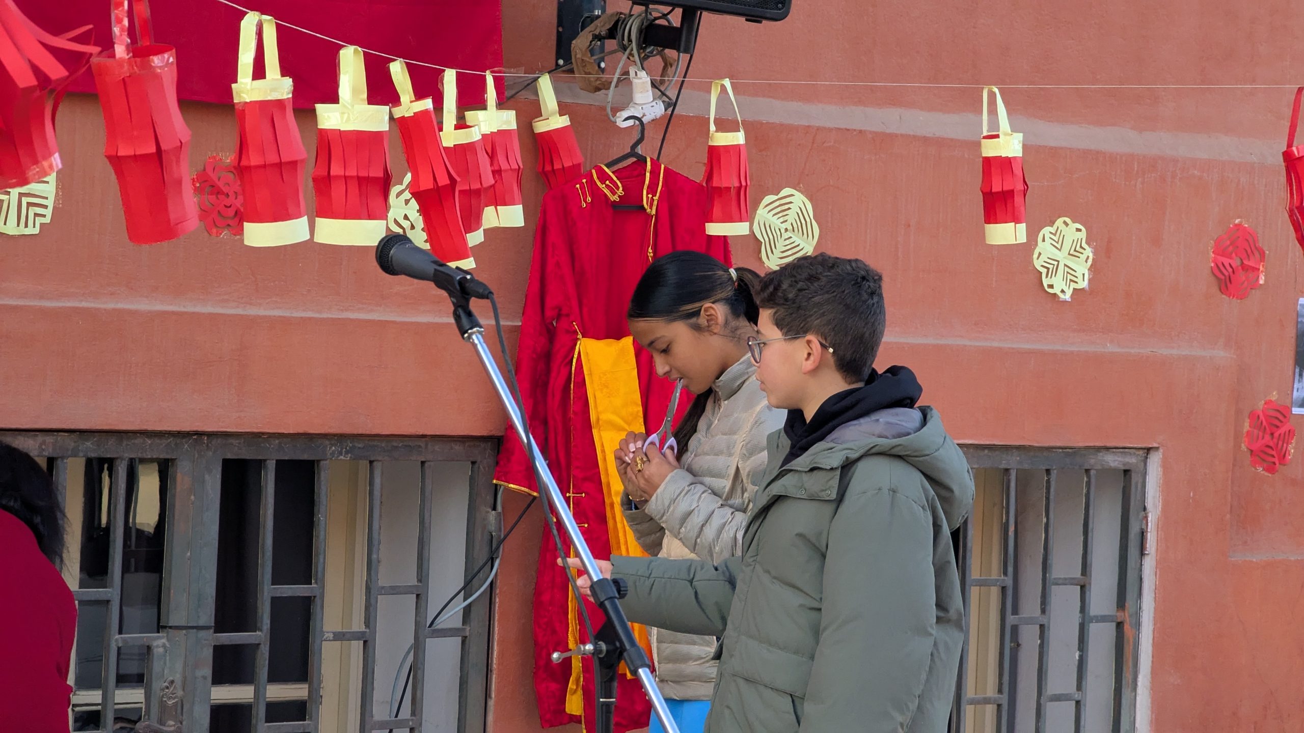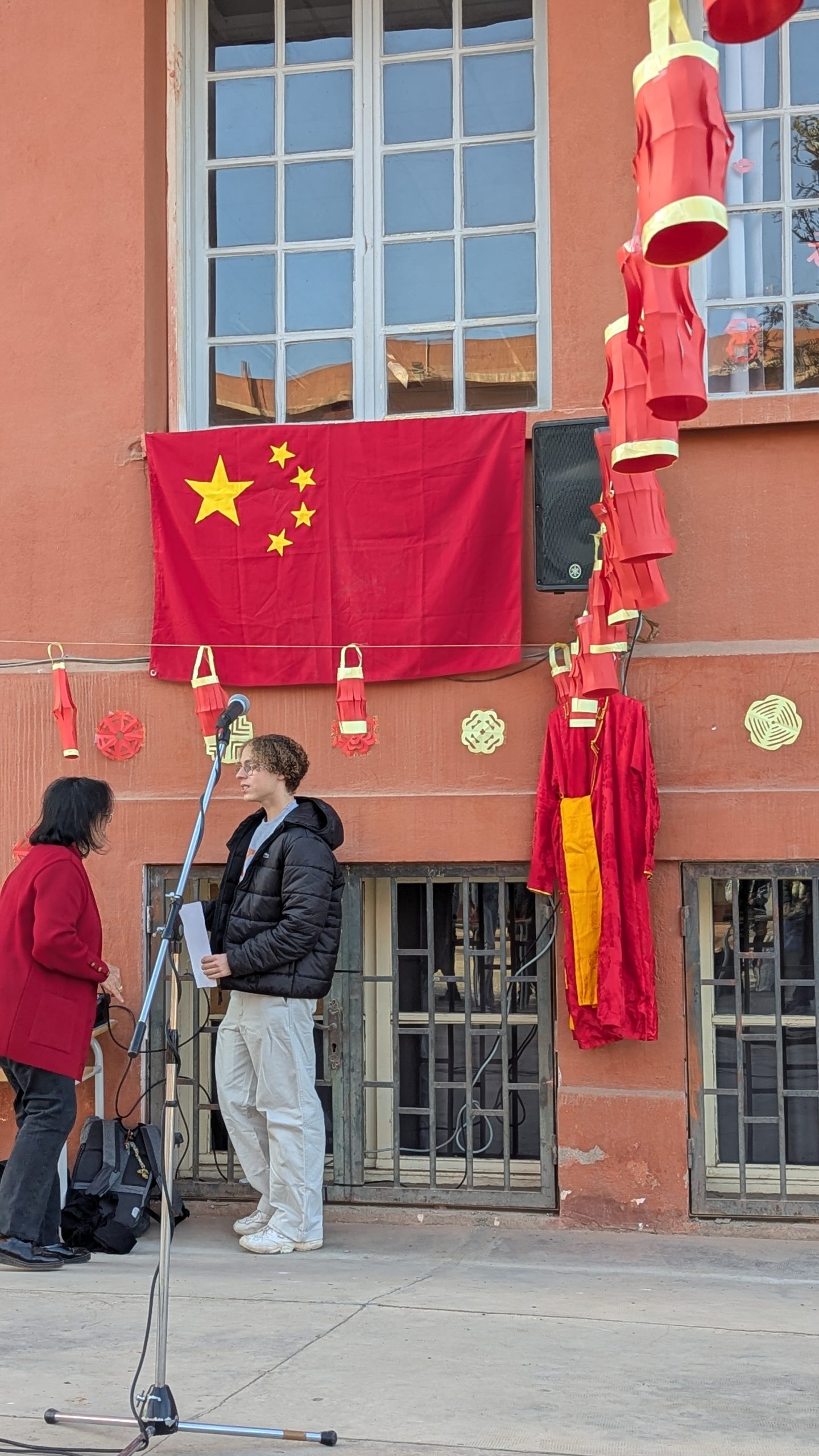 Devant la salle de musique, une scène éphémère a accueilli chaque jour des performances mémorables. Les élèves ont interprété avec brio le traditionnel “Gōngxǐ gōngxǐ nǐ” et un chant sur les 12 animaux du zodiaque. Un moment particulièrement émouvant fut la récitation d’un poème de Li Bai, grand poète de la Dynastie des Tang, transportant l’audience dans la Chine ancestrale.