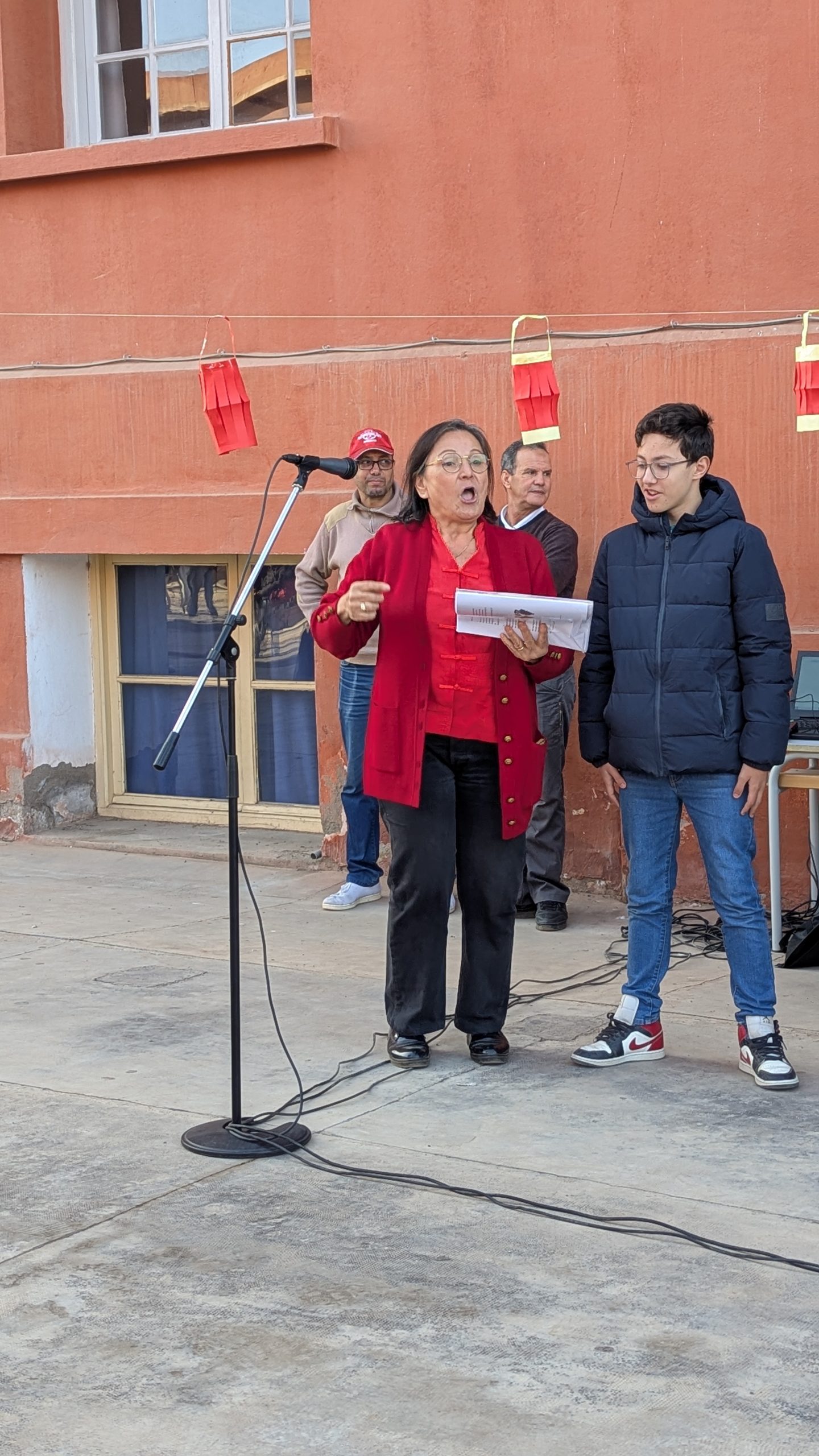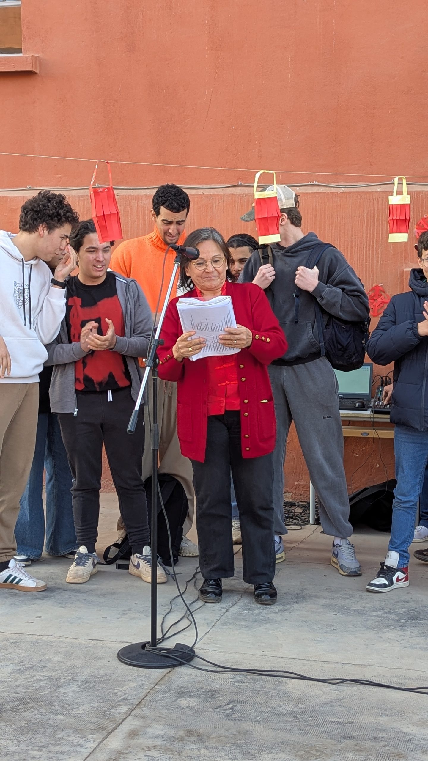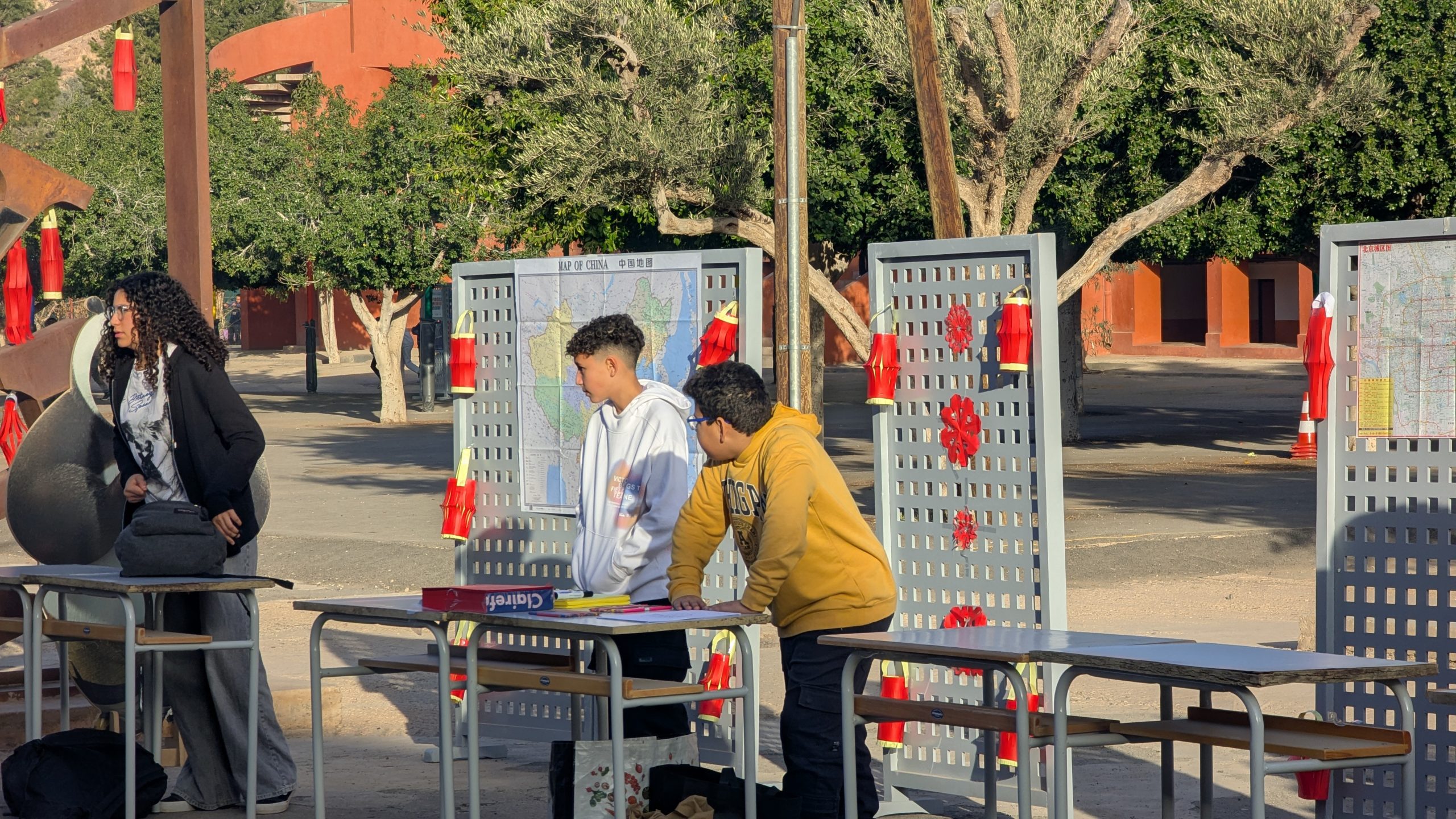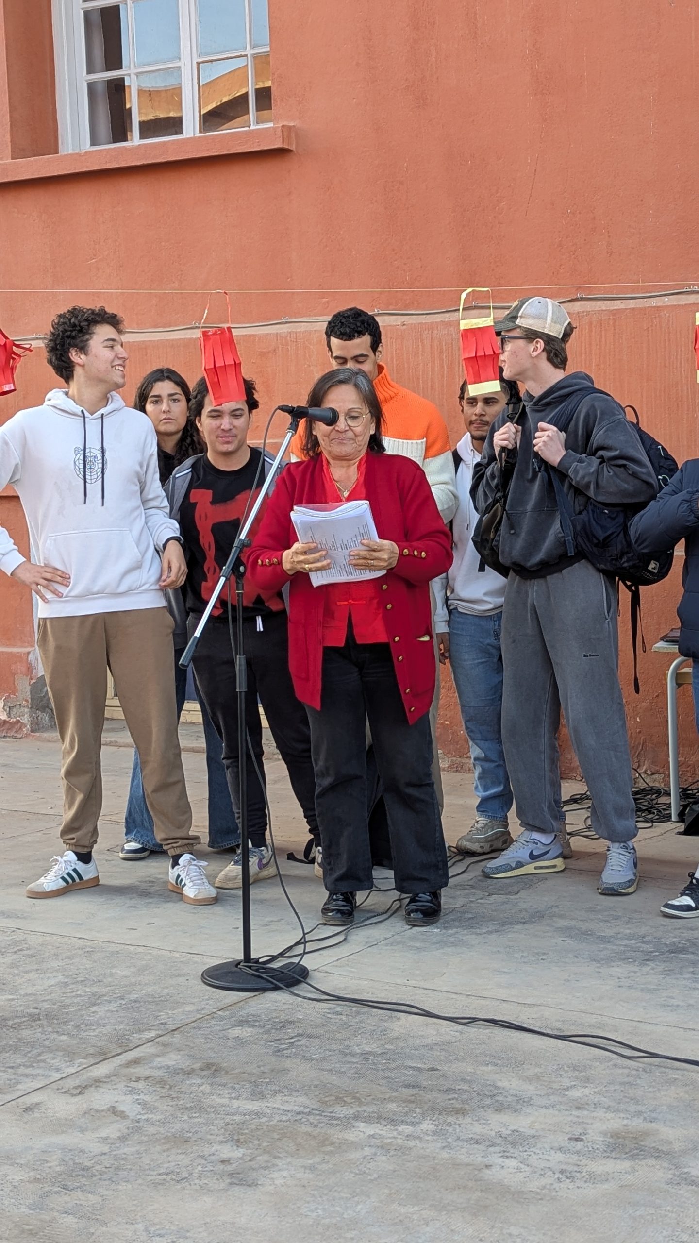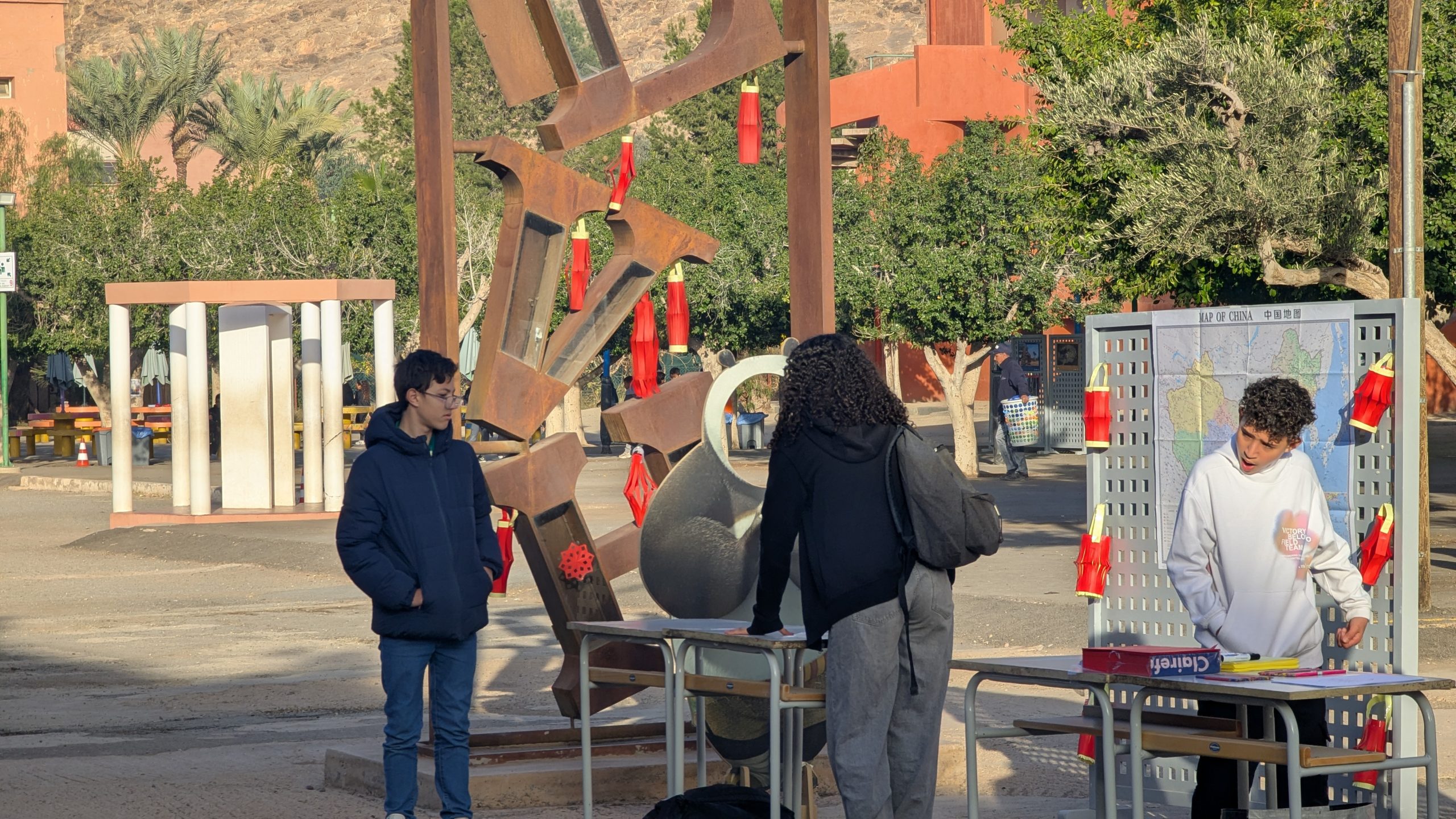 Devant la salle de musique, une scène éphémère a accueilli chaque jour des performances mémorables. Les élèves ont interprété avec brio le traditionnel “Gōngxǐ gōngxǐ nǐ” et un chant sur les 12 animaux du zodiaque. Un moment particulièrement émouvant fut la récitation d’un poème de Li Bai, grand poète de la Dynastie des Tang, transportant l’audience dans la Chine ancestrale.