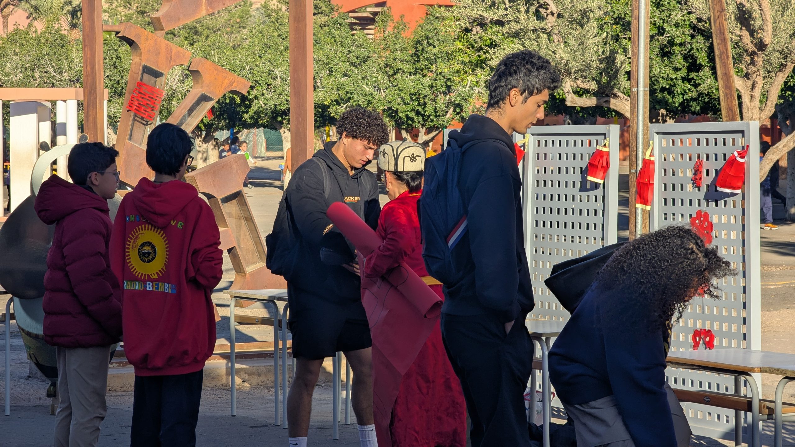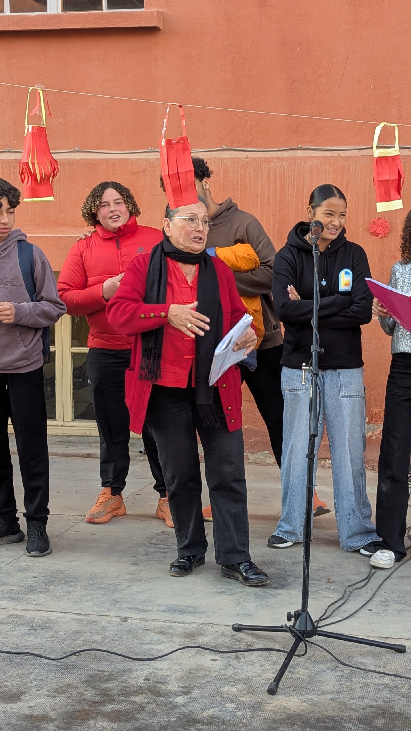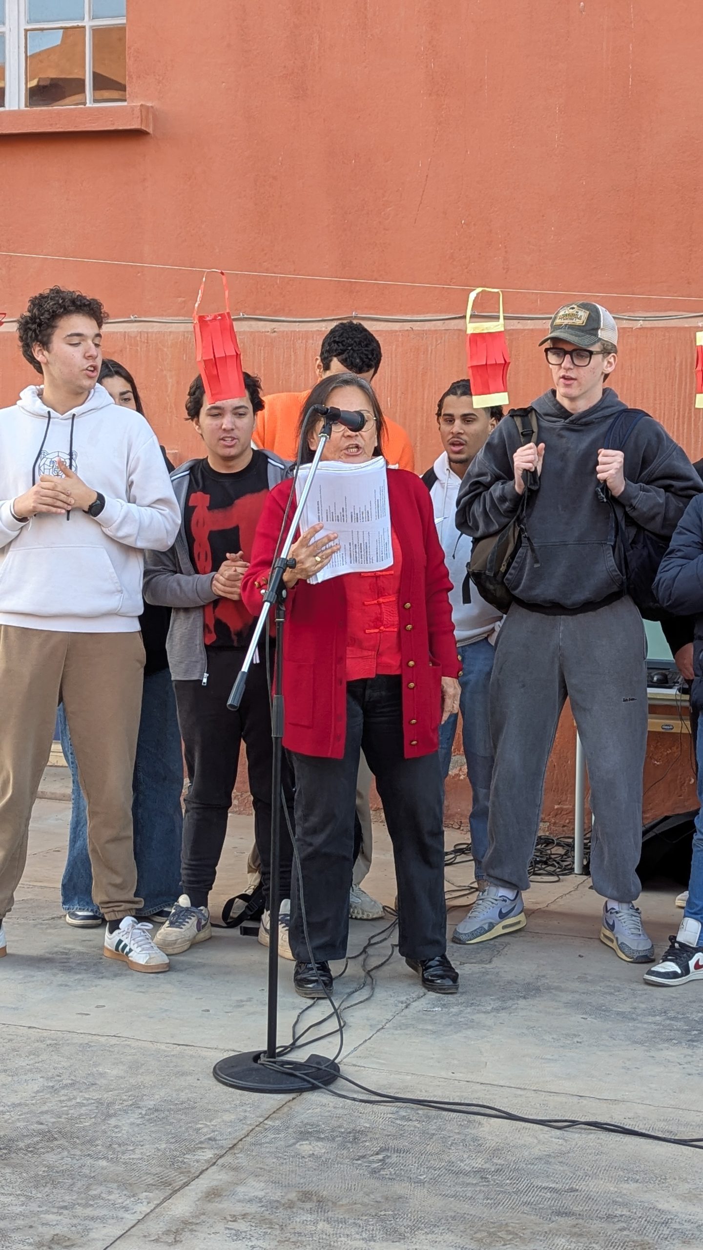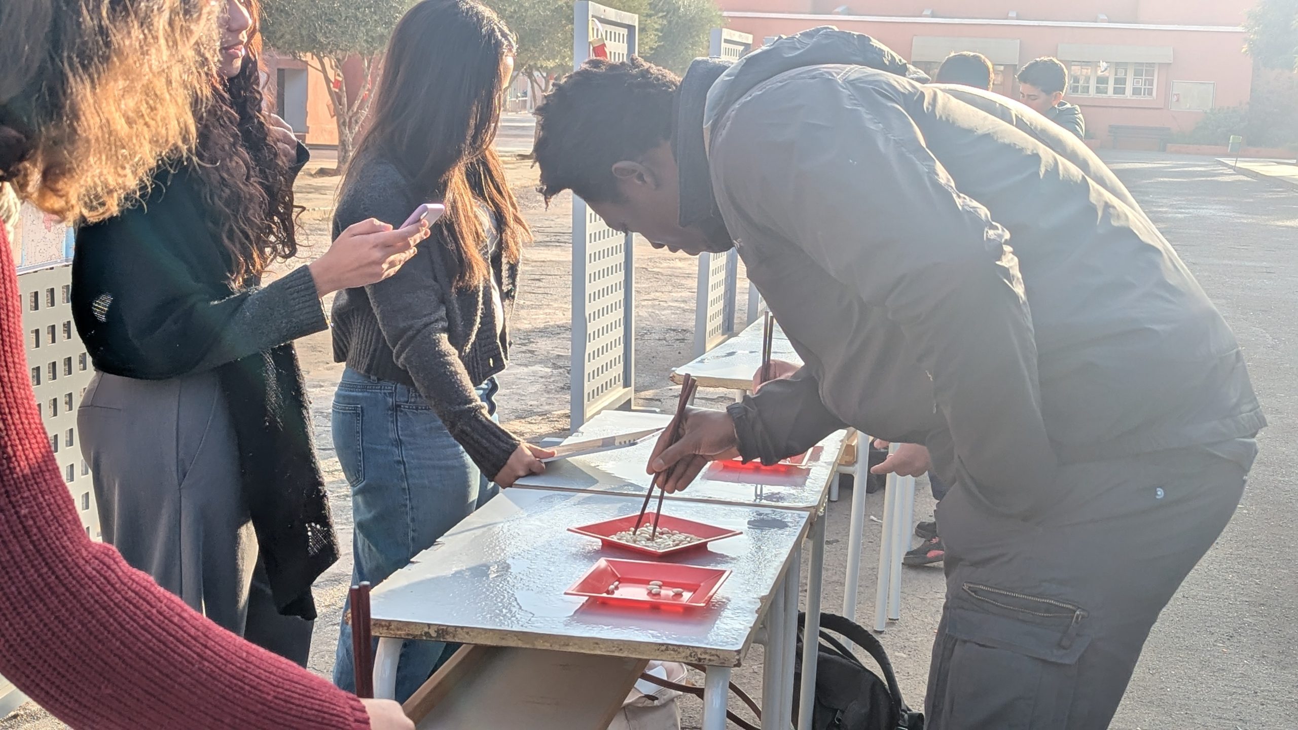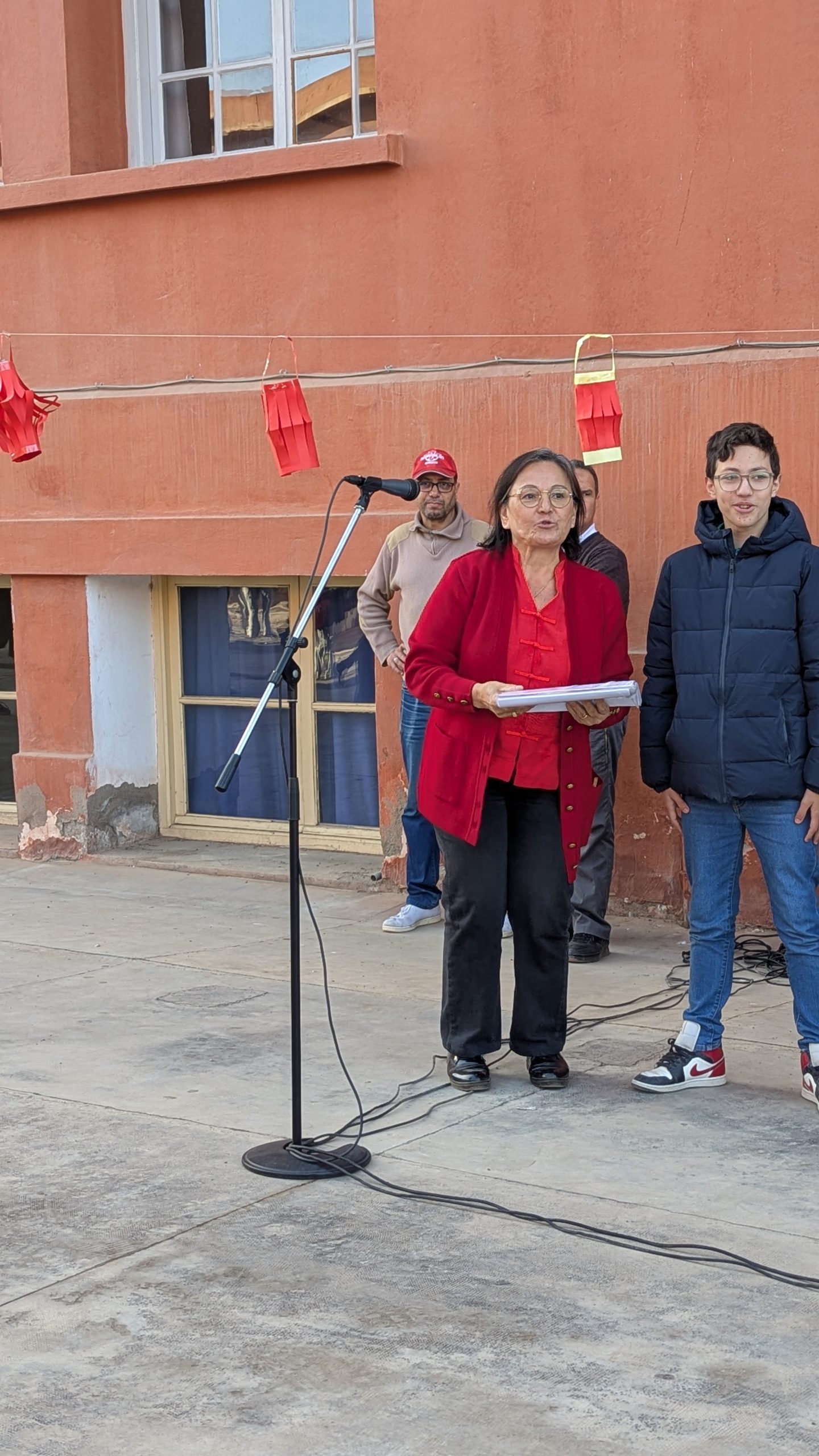 Devant la salle de musique, une scène éphémère a accueilli chaque jour des performances mémorables. Les élèves ont interprété avec brio le traditionnel “Gōngxǐ gōngxǐ nǐ” et un chant sur les 12 animaux du zodiaque. Un moment particulièrement émouvant fut la récitation d’un poème de Li Bai, grand poète de la Dynastie des Tang, transportant l’audience dans la Chine ancestrale.